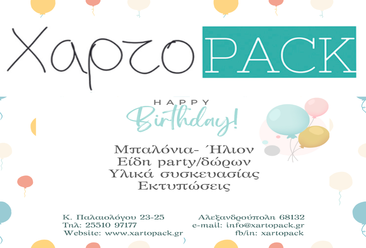 Αν αναζητάτε ποιοτικά υλικά συσκευασίας, πρωτότυπα είδη πάρτι και εντυπωσιακά μπαλόνια για κάθε περίσταση, τότε η απάντηση είναι μία: ΧαρτοPACK! Η επιχείρησή μας, με έδρα